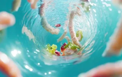 अंततः, कोई भी बचा हुआ पदार्थ जो पच नहीं पाता, बड़ी आंत (जिसे कोलन भी कहते हैं) में चला जाता है। यहीं पर पानी ग्रहण होता है, और जो बचता है वह अपशिष्ट बन जाता है। यहाँ पर भी आपका माइक्रोबायोम लगातार रेशों को तोड़ने और हानिकारक बैक्टीरिया को नियंत्रित रखने में मदद करते हुए अपनी अहम भूमिका निभाता है।